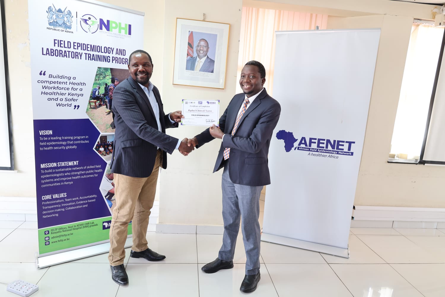 The Kenya Field Epidemiology and Laboratory Training Program (FELTP) held a completion ceremony on 28 January 2025 to mark the successful conclusion of training for Cohort 20 of the Advanced FETP level. The event took place at the Afya Annex Building, Kenya National Public Health Institute (KNPHI) grounds and brought together residents, FELTP faculty and.jpeg staff, and KNPHI leadership.